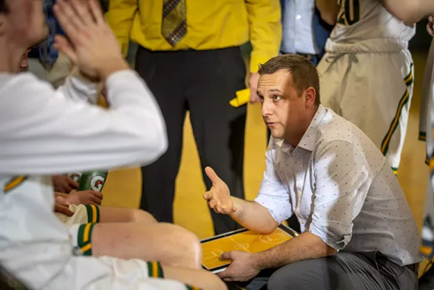 Matthew Toof coaching basketball at BFA St. Albans in February 2020
