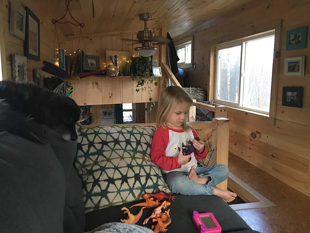 The family moved in just as summer was starting, so they were able to spend a lot of time outdoors — sipping coffee from camp chairs while Robyn played in the sandbox or on the swing set. Now that it’s nearly mid-winter, we were wondering how the colder months affected tiny-house living. We contacted Morrison for an update.